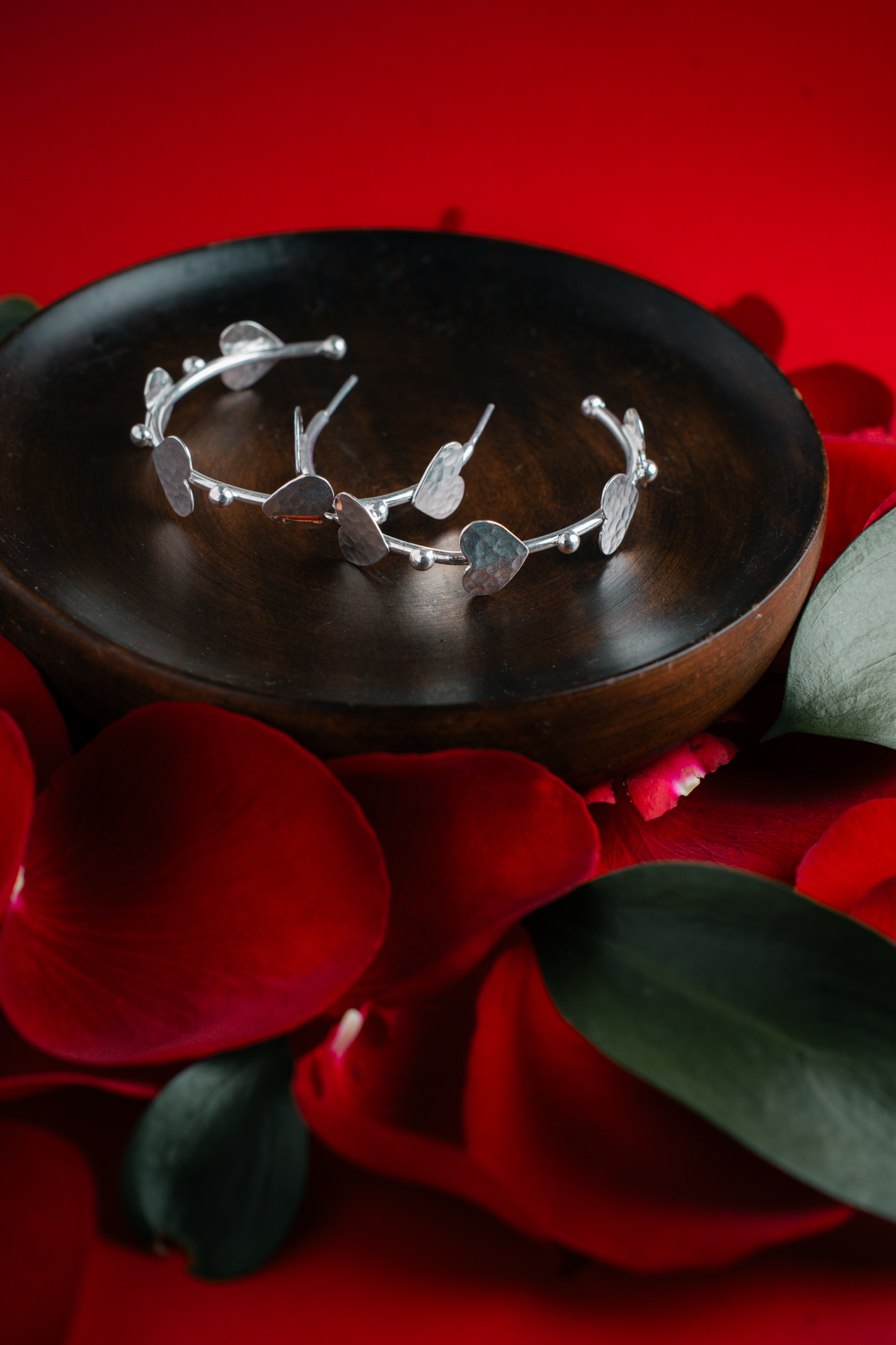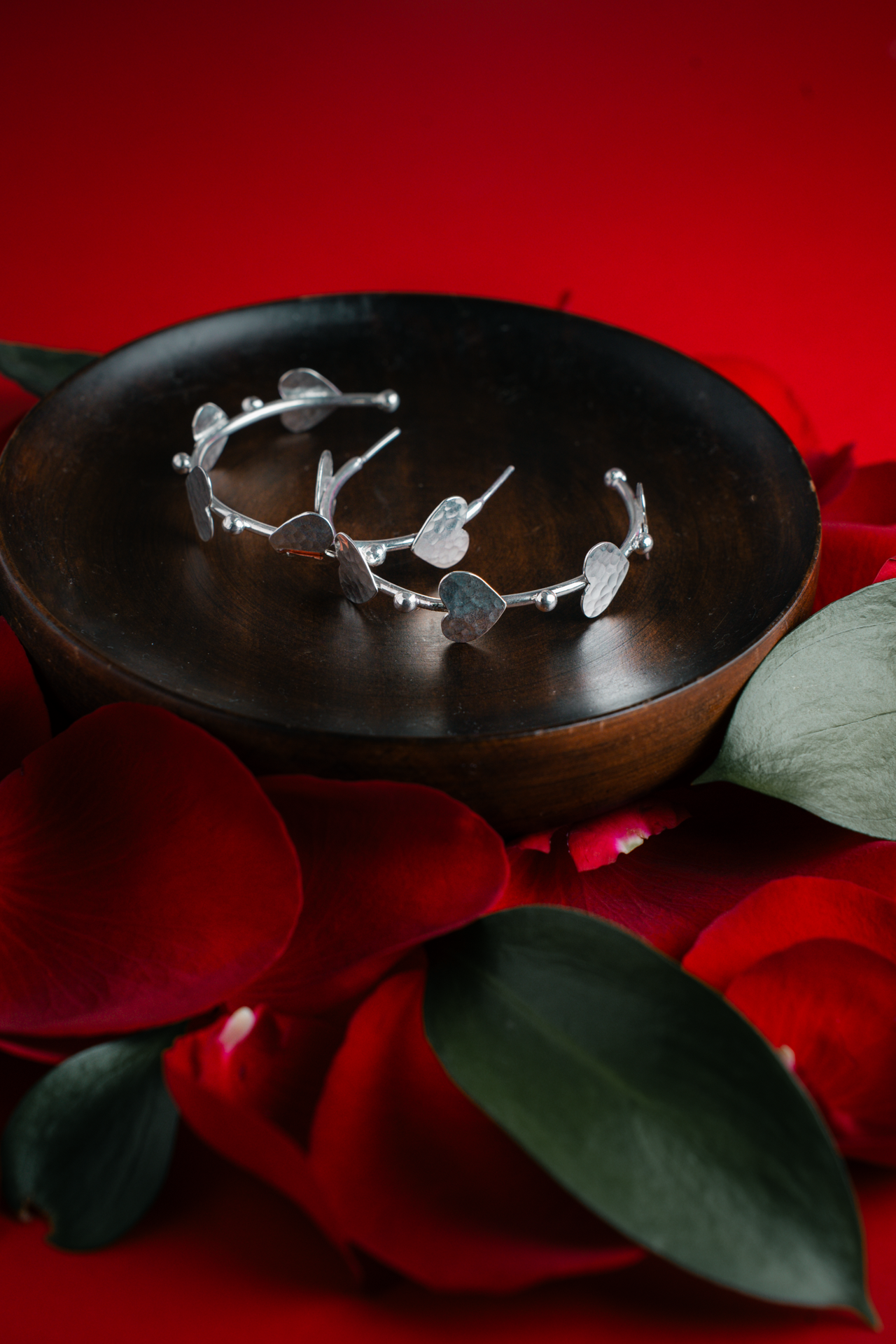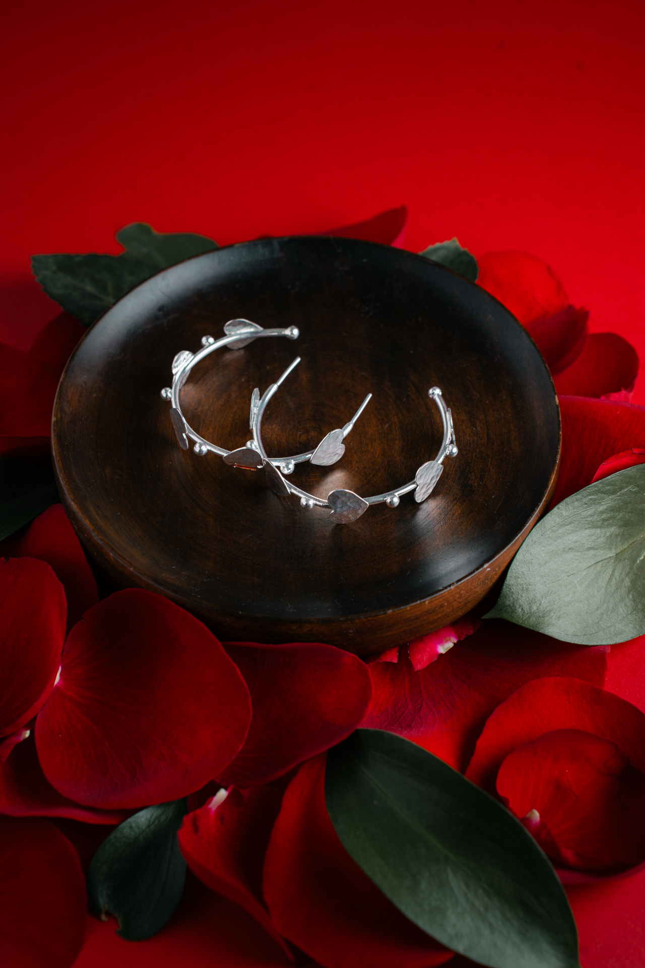 - Diseño de candongas de 4 cms de diámetro, con corazones que las adornan.