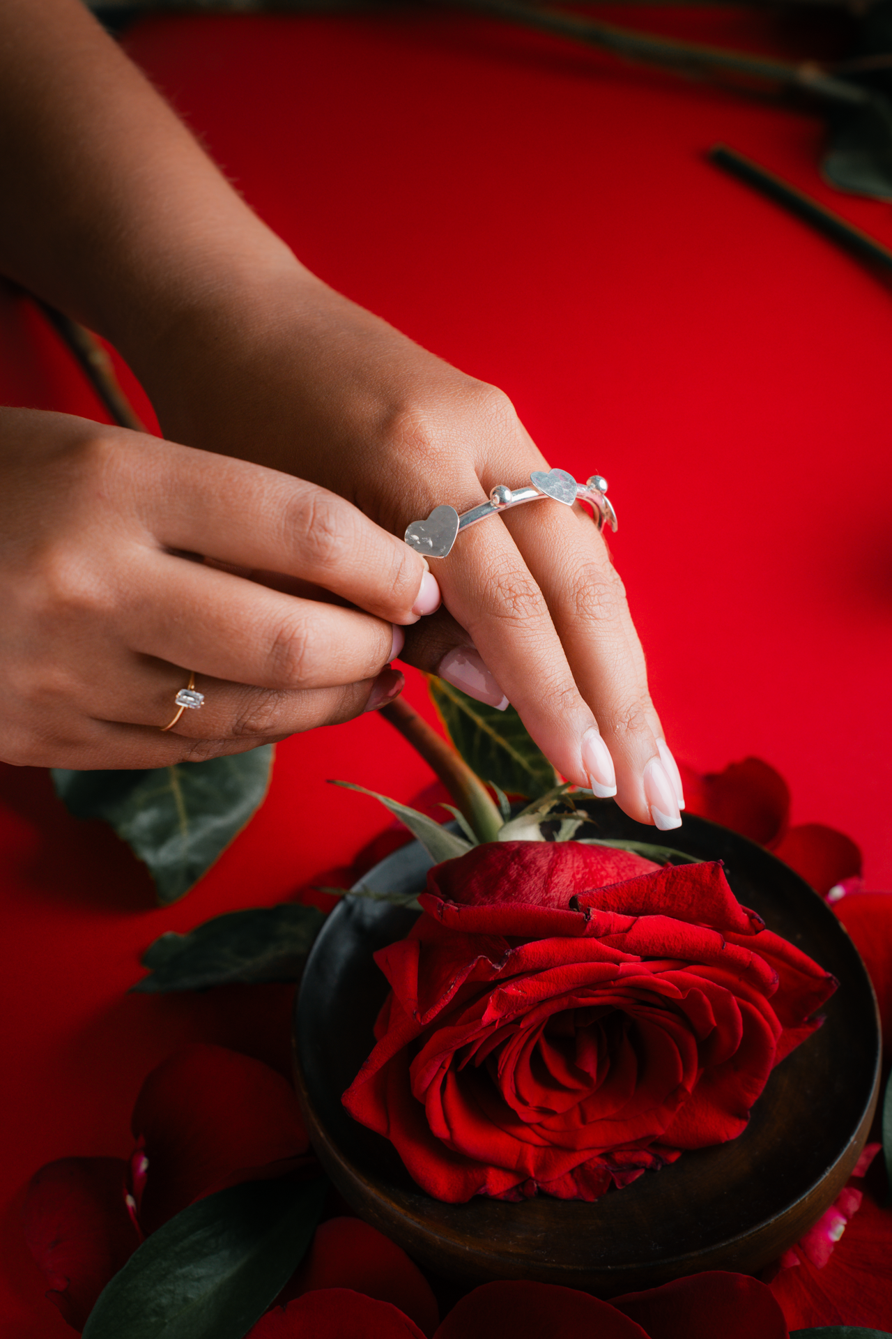 - Pulsera elaborada en bronce, diseño de aro con corazones